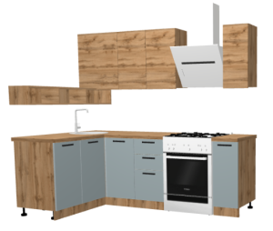 Кухня "Твист Лазурь" 1.4*2.3 м Дуб вотан/Лазурь (Без столешницы, мойки, сушки)